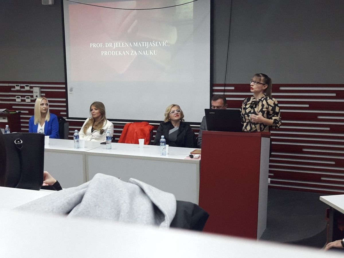 Prof. dr Marijana Mladenov, prodekan za međunarodnu saradnju govorila je o internacionalizaciji i mogućnostima koje studenti i studentkinje master studija Pravnog fakulteta za privredu i pravosuđe imaju kroz programe mobilnosti uspostavljene sa različitim visokoškolskim ustanovama iz celog sveta. Prof. dr Marijana Mladenov je naglasila da su im vrata Kancelarije za međunarodnu saradnju na Fakultetu uvek otvorena. Studentima i studentkinjama se obratila i Doc. dr Maja Petrović, prodekan za kvalitet i razvoj i tom prilikom istakla da se kvalitet Fakulteta ogleda u kvalitetu studenata.