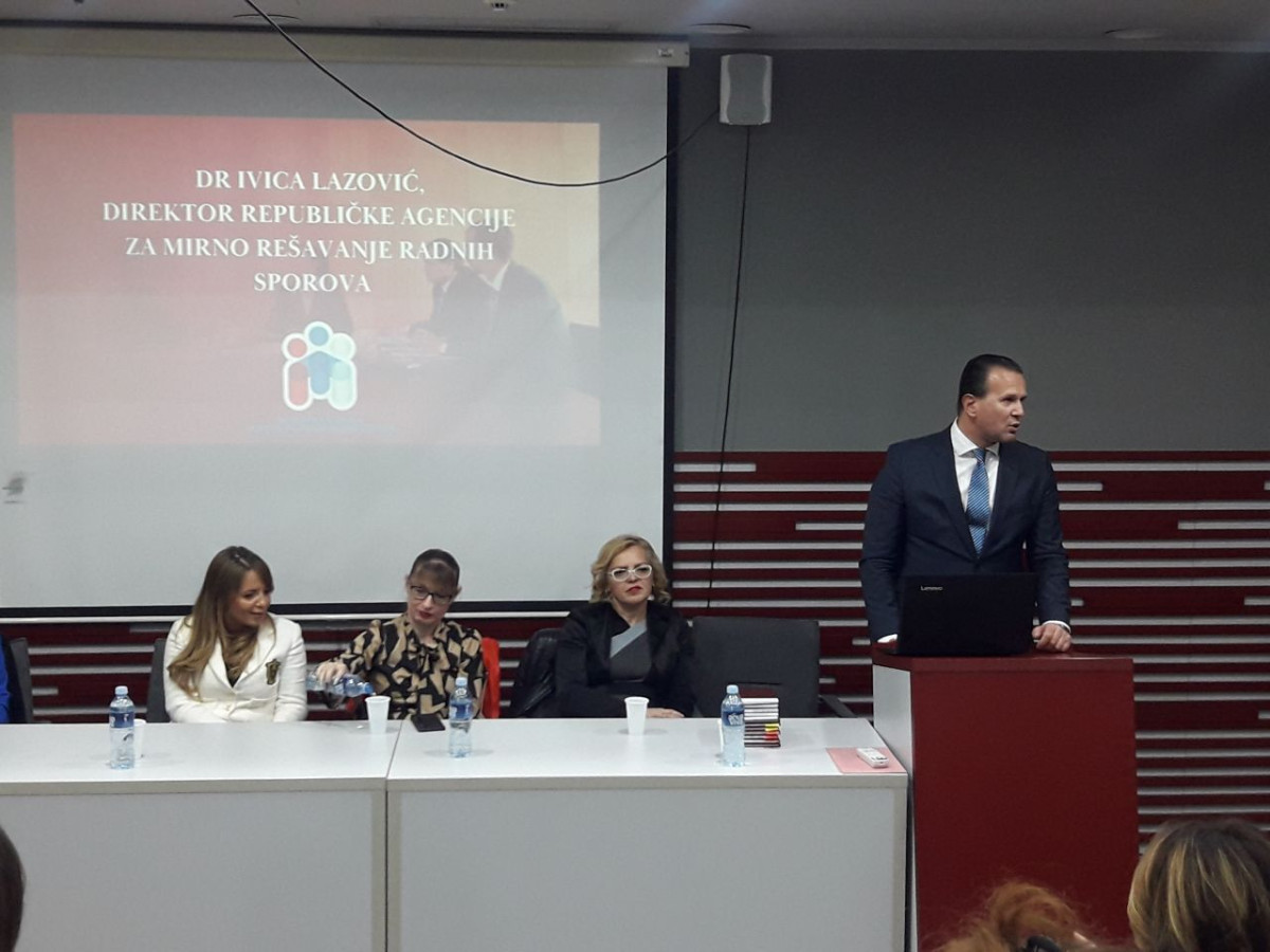 Nakon toga, studentima i studentkinjama se obratio i održao predavanje dr Ivica Lazović, direktor Republičke agencije za mirno rešavanje radnih sporova.