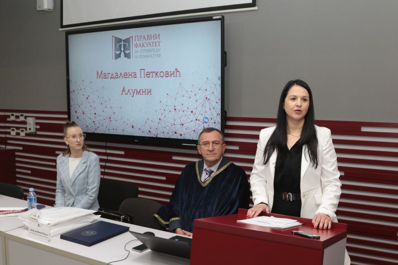 Okupljene je pozdravila i alumnistkinja Magdalena Petković koja je na Pravnom fakultetu za privredu i pravosuđe u Novom Sadu diplomirala 2010. godine sa prosekom 9,22. Ona je podelila svoje iskustvo sa studija, kao i detalje o razvoju njene karijere nakon što je diplomirala, pa sve do danas.