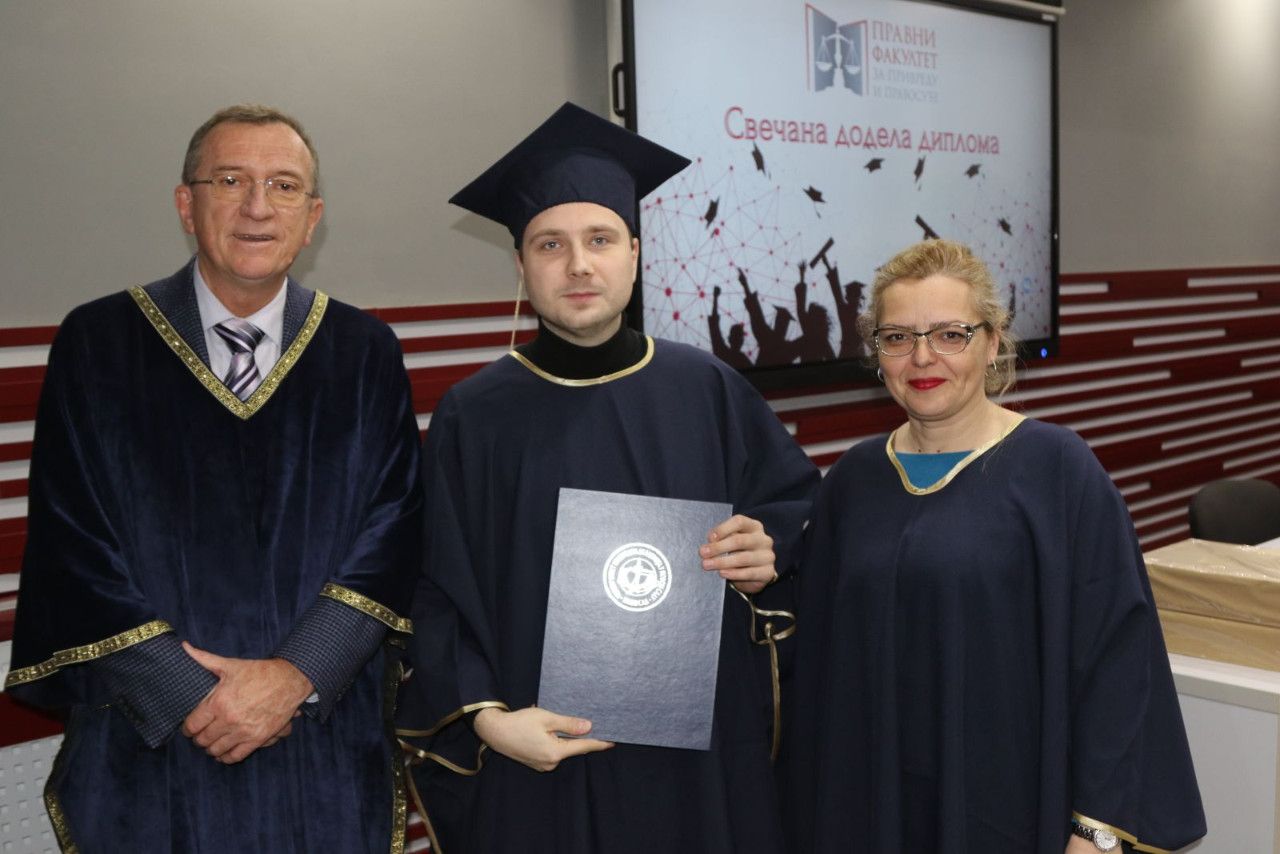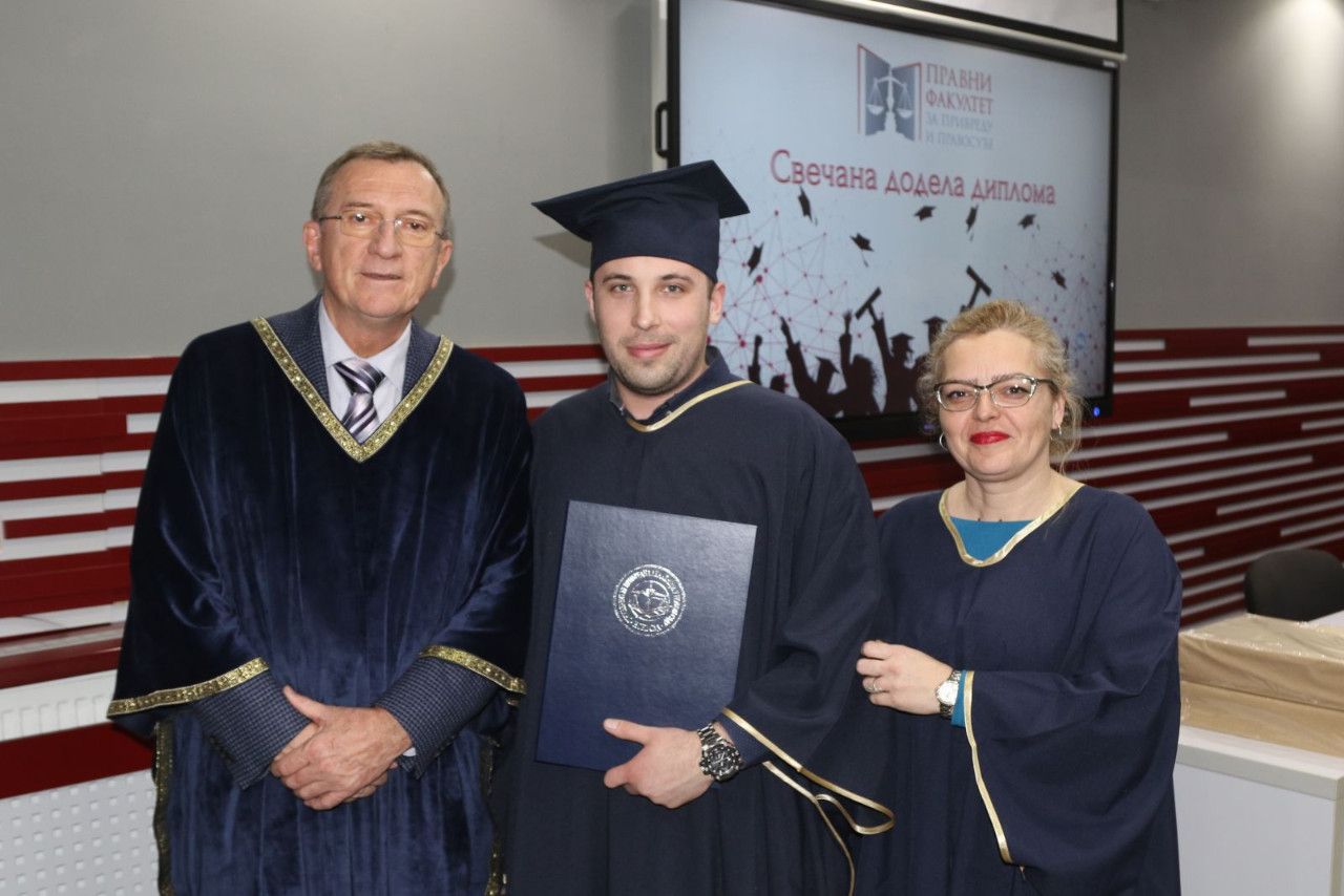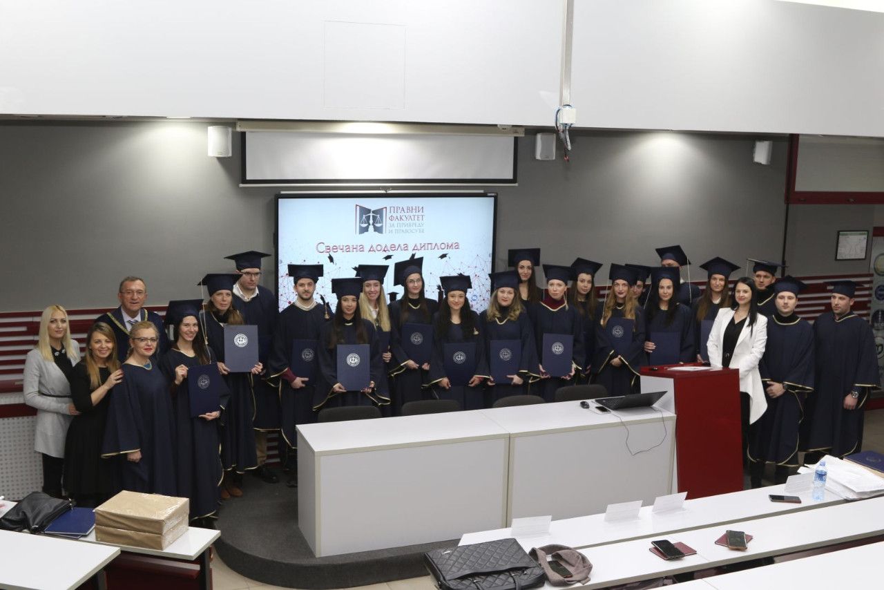 Nakon intoniranja univerzitetske himne „Gaudeamus Igitur“, diplomirane pravnike i njihove roditelje i prijatelje pozdravio je dekan fakulteta prof. dr Milan Počuča koji im je čestitao na uspešno završenim osnovnim akademskim studijama. Naglasio je da je iza njih dug i nimalo lak put koji su oni uspešno prešli, kao i da njihovi roditelji treba da budu ponosni.