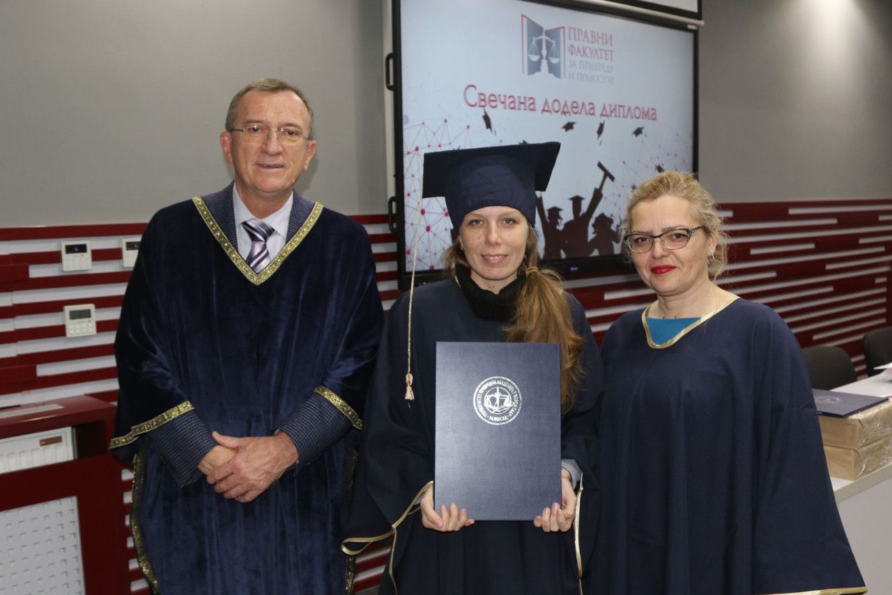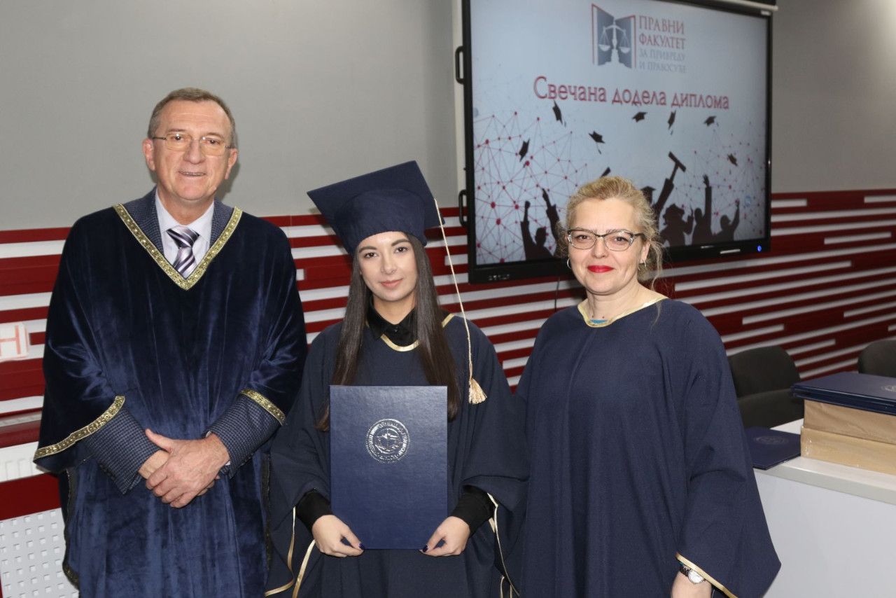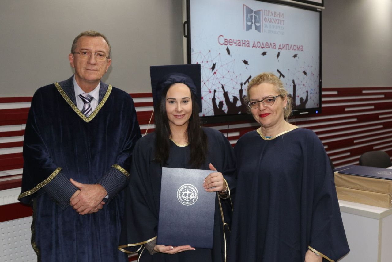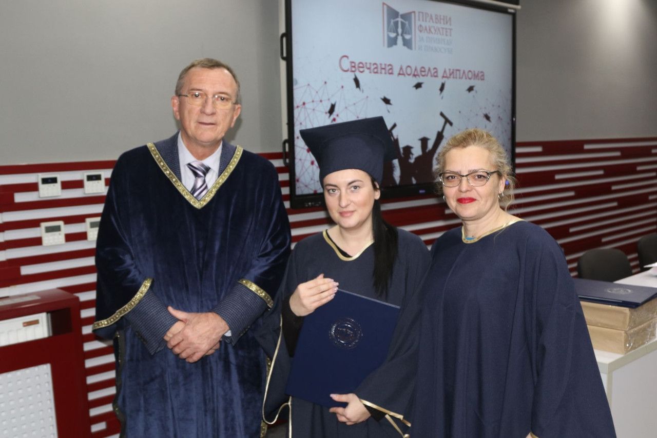 Nakon intoniranja univerzitetske himne „Gaudeamus Igitur“, diplomirane pravnike i njihove roditelje i prijatelje pozdravio je dekan fakulteta prof. dr Milan Počuča koji im je čestitao na uspešno završenim osnovnim akademskim studijama. Naglasio je da je iza njih dug i nimalo lak put koji su oni uspešno prešli, kao i da njihovi roditelji treba da budu ponosni.