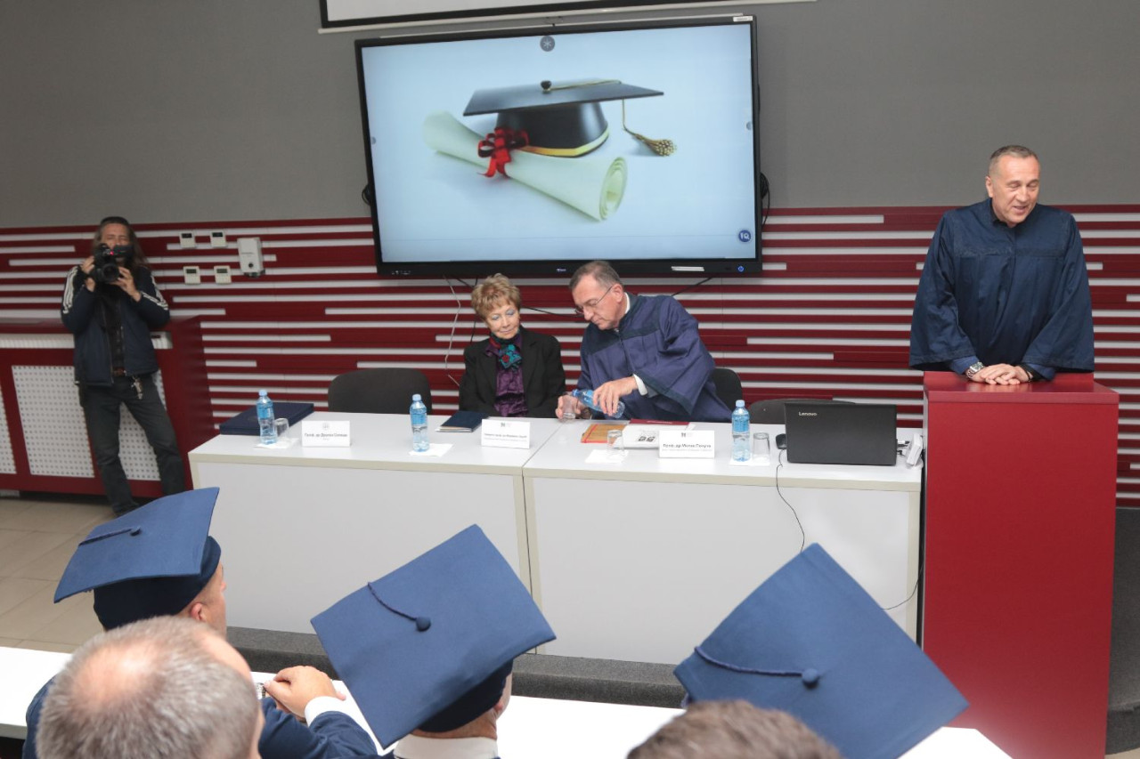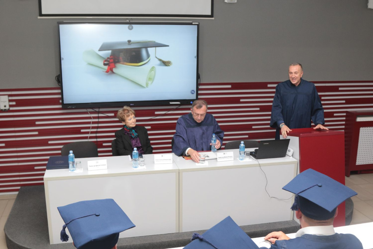 Sve prisutne pozdravili su prof. dr Marijana Carić, predsednica Saveta univerziteta, rektor Univerziteta Privredna akademija u Novom Sadu, prof. dr Dragan Soleša i prof. dr Milan Počuča, prorektor za nauku Univerziteta Privredna akademija i dekan Pravnog fakulteta za privredu i pravosuđe u Novom Sadu. Svakog kandidata, kao i naučne doprinose disertacija, predstavili su njihovi mentori. Nakon predstavljanja rektor Univerziteta, prof. dr Dragan Soleša, svečano je uručio diplome i promovisao kandidate u doktore nauka.