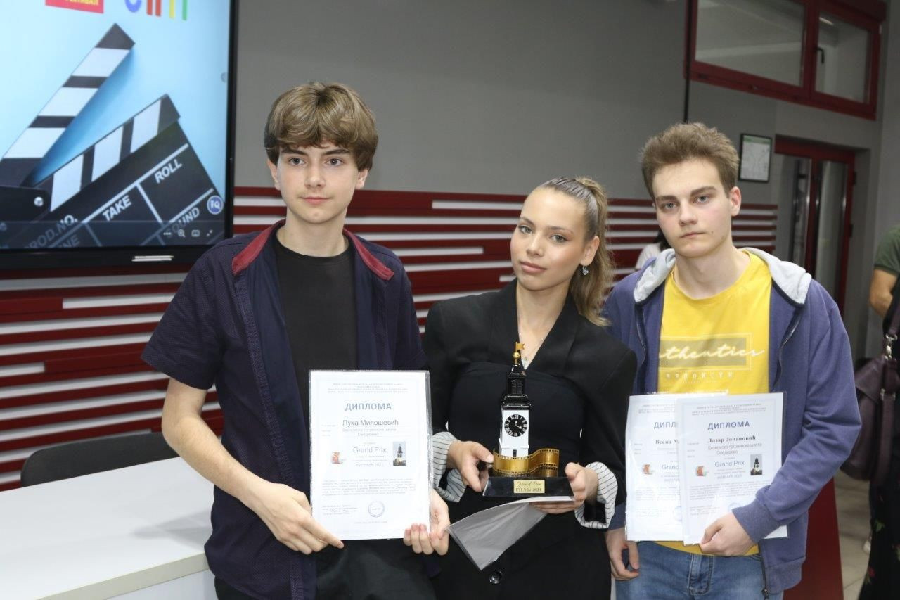 Glavnu nagradu, prepoznatljiv simbol Novog Sada-Sahat kula sa Petrovaradina, osvojio je tim Dream Team iz Ekonomsko-trgovinske škole iz Smedereva za filmić pod nazivom „San“.