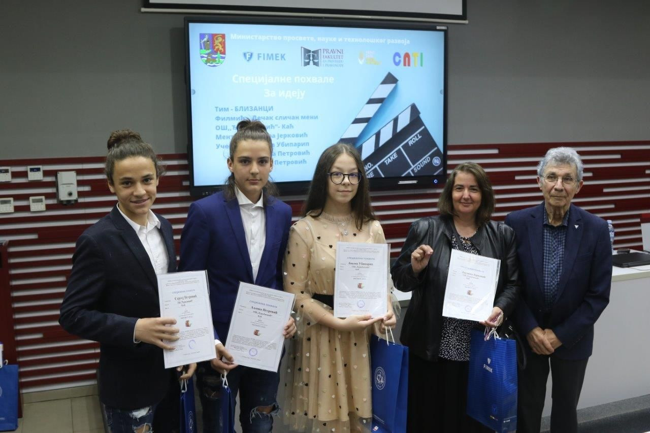 Najbolјi radovi 12 filmića (osnovne i srednje škole), kao i njihovi mentori nagrađeni su nagradama koje su obezbedili Fakultet za ekonomiju i inženjerski menadžment i Pravni fakultet, Univerziteta Privredna akademija.