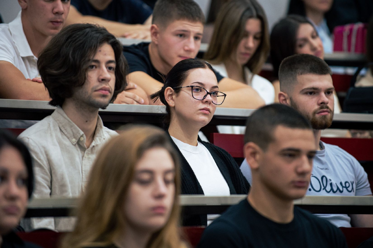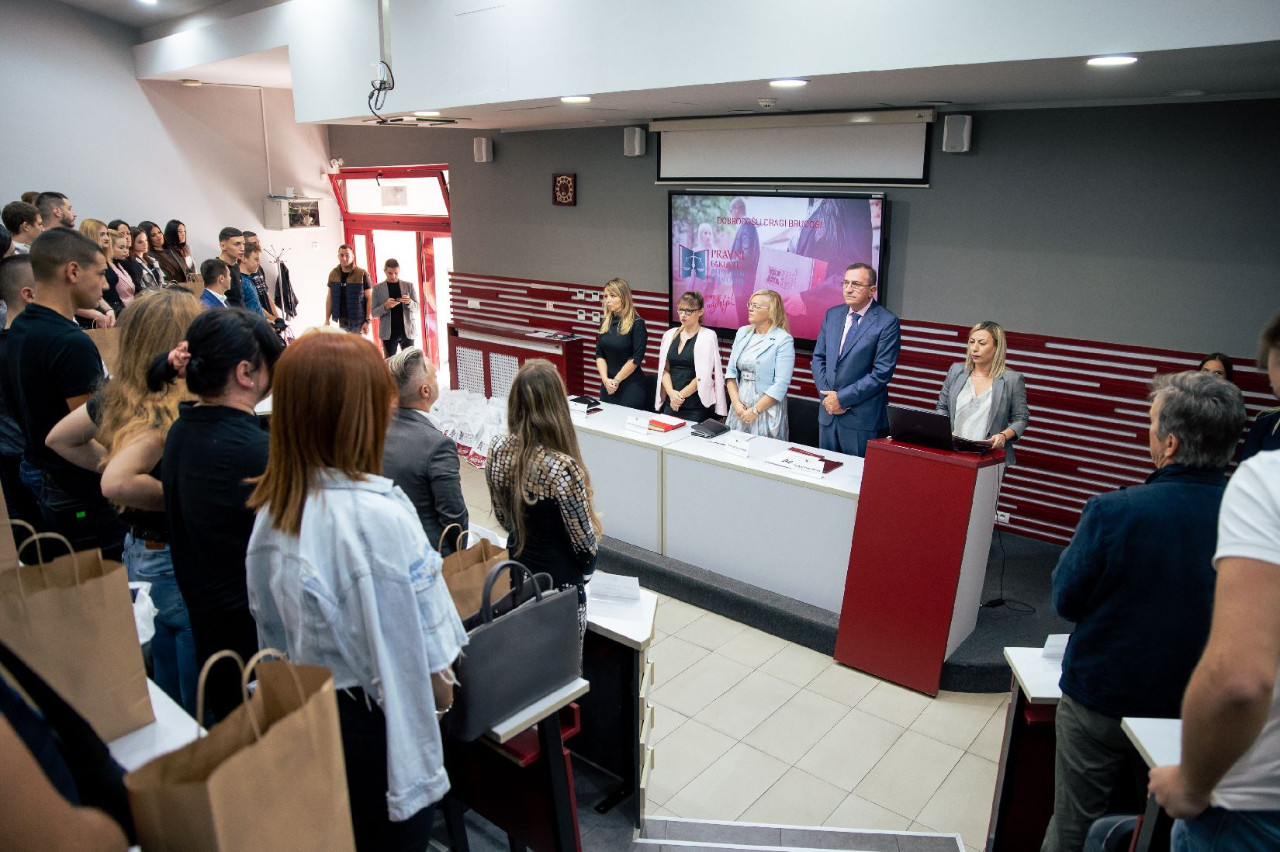 U amfiteatru Pravnog fakulteta za privredu i pravosuđe 2.10.2023. godine održan je svečani prijem brucoša. Studente je pozdravio dekan, prof. dr Milan Počuča, kao i prof. dr Sanja Škorić, prodekanka za nastavu, prof. dr Marijana Mladenov prodekanka za međunarodnu saradnju i prof. dr Jelena Matijašević, prodekanka za nauku.
