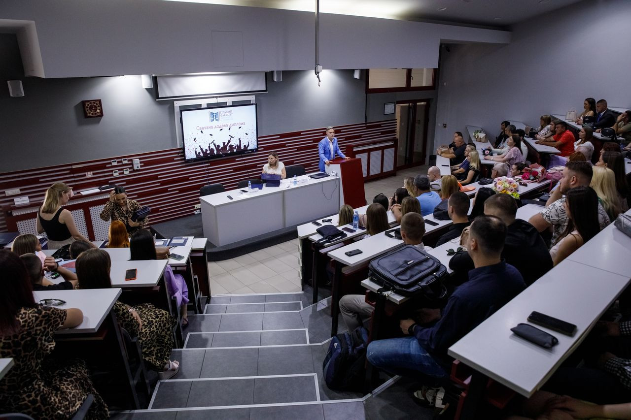 Posle intoniranja univerzitetske himne „Gaudeamus Igitur“, diplomirane pravnike i njihove roditelje i prijatelje pozdravio je prof. dr Predrag Mirković, predsednik Saveta Pravnog fakulteta za privredu i pravosuđe koji im je čestitao na uspešno završenim osnovnim akademskim studijama. On je istakao da je sledeći njihov korak izlazak na tržište rada i da na to ne treba gledati kao na veliki izazov, jer svi privredni subjekti, kao i privatni i državni sektor imaju potrebu za diplomiranim pravnicima. Ono što je važno jeste da se školovanje i usavršavanje nakon osnovnih akademskih studija nastavi.