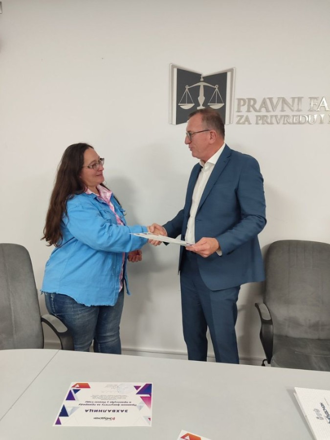 Posebne zahvalnice doc. dr Dragana Ćorić uručila je organizatorima i predavačima, kao i Pravnom fakultetu za privredu i pravosuđe, koji je zajedno sa Pokrajinskim zaštitnikom građana – ombudsmanom organizovao Školu ljudskih prava.
