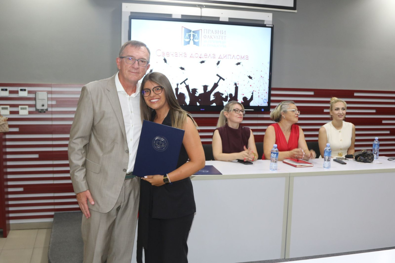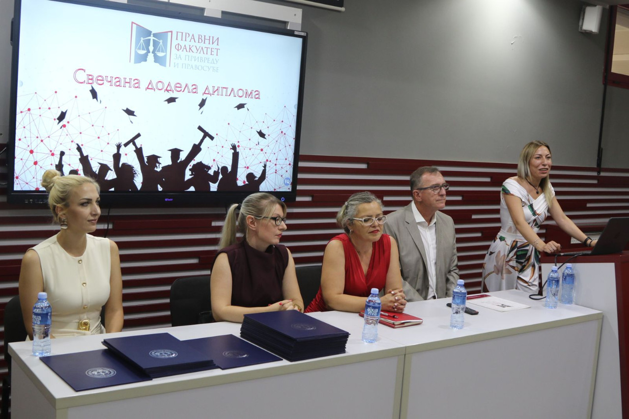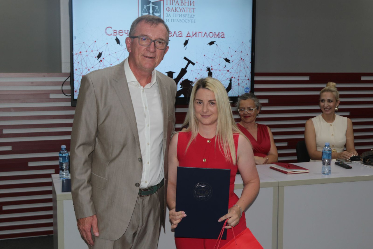 Danas gledam u vas – diplomce 24. generacije Pravnog fakulteta za privredu i pravosuđe – i u vašim očima prepoznajem nešto što ne može da se oceni ocenama, ne meri se prosekom, ne vidi se na papiru: zrelost, snagu i spremnost da preuzmete odgovornost. Odgovornost ne samo za sebe, već i za zajednicu, društvo i budućnost.