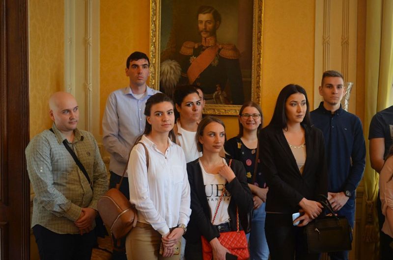 Dvadeset studenata dočekao je kustos, koji je predstavio samo zdanje, istoriju zdanja i umetničke predmete koji se nalaze u Domu Narodne skupštine, a potom ih sproveo kroz Narodnu skupštinu. Posetiocima je u predvorju predstavljena kraća istorija ove značajne institucije i već na samom ulazu primetna je bogata umetnička riznica i lepota ovog zdanja. Studenti su imali priliku da vide i centralni hol, malu salu, biblioteku i posebno raskošan salon kneza Pavla, odnosno diplomatski salon, kao i predmete koji se nalaze u ovom zdanju koji su izuzetne umetničke vrednosti. Studenti su se ukratko upoznali sa radom ove značajne institucije, te su postavljali pitanja kustosu. Poseta je trajala oko četrdeset i pet minuta, te se čini da je to malo vremena, ne samo zato što je u pitanju institucija značajna za sve građane, a posebno buduće pravnike, već imajući u vidu i to da je Dom Narodne skupštine vredan divljenja gledajući samo njegove fasade, ali raskoš i lepota krase ovo zdanje i unutar njegovih zidova.