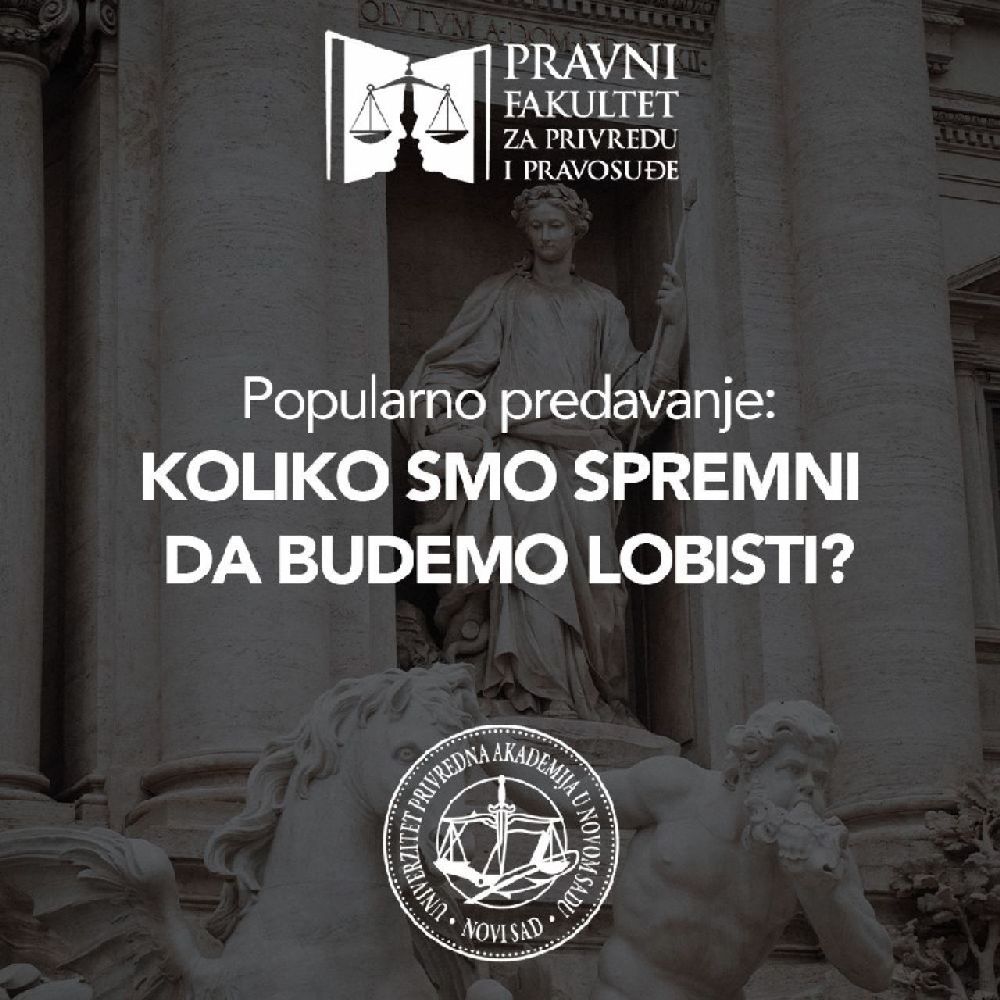 U amfiteatru Pravnog fakulteta za privredu i pravosuđe 2.6.2021. godine studenti fakulteta, kao i drugi zainteresovani imali su priliku da prisustvuju popularnom predavanju na temu: „Koliko smo spremni da budemo lobisti?“.