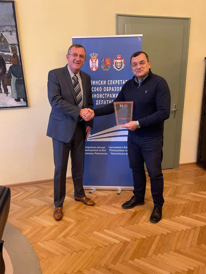 Prof. dr Milan Počuča, dekan Pravnog fakulteta za privredu i pravosuđe i prof. dr Joko Dragojlović, vanredni profesor 17.10.2022. godine posetili su Pokrajinski sekretarijat za visoko obrazovanje i naučnoistraživačku delatnost i uručili plaketu prof. dr Zoranu Miloševiću, pokrajinskom Sekretaru.