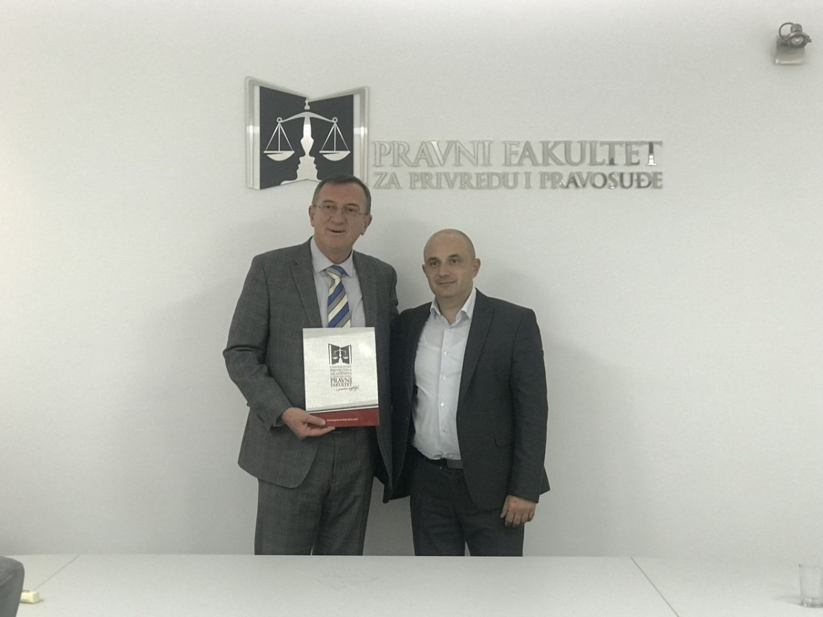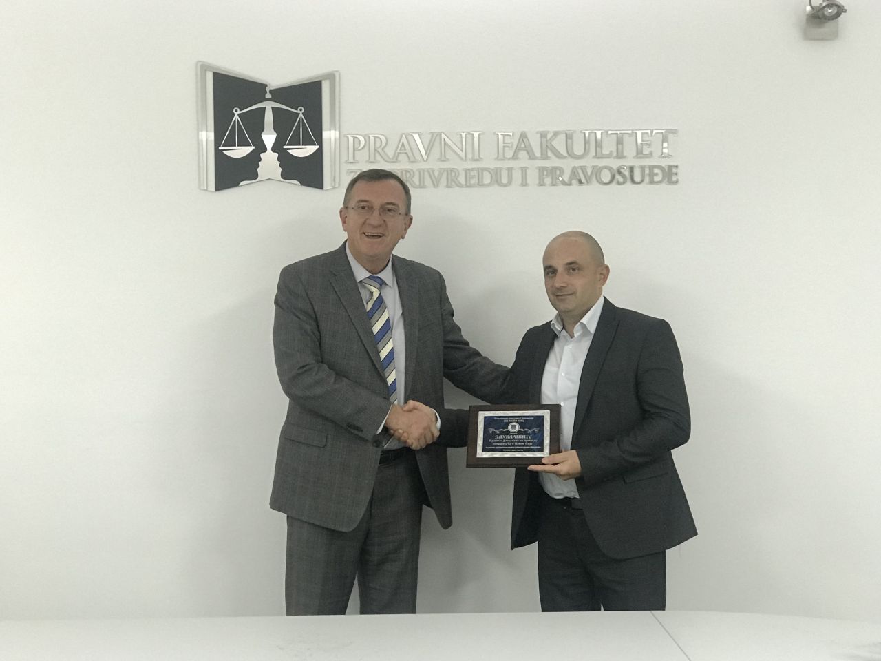 Nakon potpisanog sporazuma prof. dr Milanu Počuči, dekanu Pravnog fakulteta za privredu i pravosuđe uručena je zahvalnica za uspešnu dugogodišnju saradnju u oblasti visokog obrazovanja.