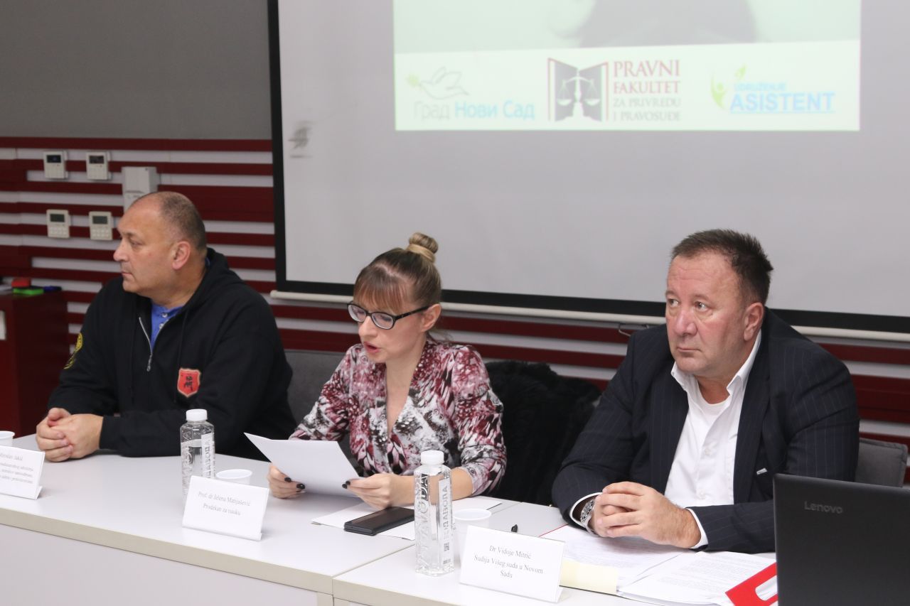O fenomenološkim karakteristikama nasilja nad ženama, uzrocima, krivičnopravnom tretmanu i primerima iz prakse govorili su učesnici tribine: dr Vidoje Mitrić, sudija Višeg suda u Novom Sadu, prof. dr Jelena Matijašević, prodekan za nauku i glavna urednica naučnog časopisa „Pravo – teorija i praksa“ i Milorad Jakić, predsednik međunarodnog udruženja telohranitelja, instruktor samoodbrane, telohraniteljske zaštite i protivterorizma.