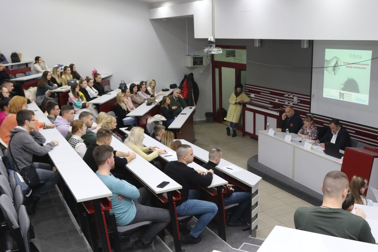 U četvrtak, 08. decembra u 17.00 časova u amfiteatru Pravnog fakulteta za privredu i pravosuđe u Novom Sadu je održana tribina povodom 16 dana aktivizma protiv nasilja nad ženama.