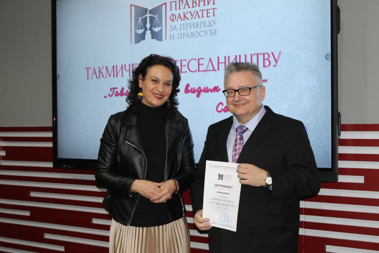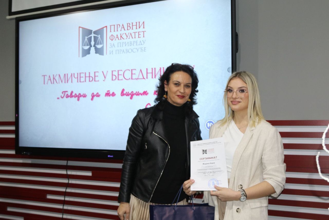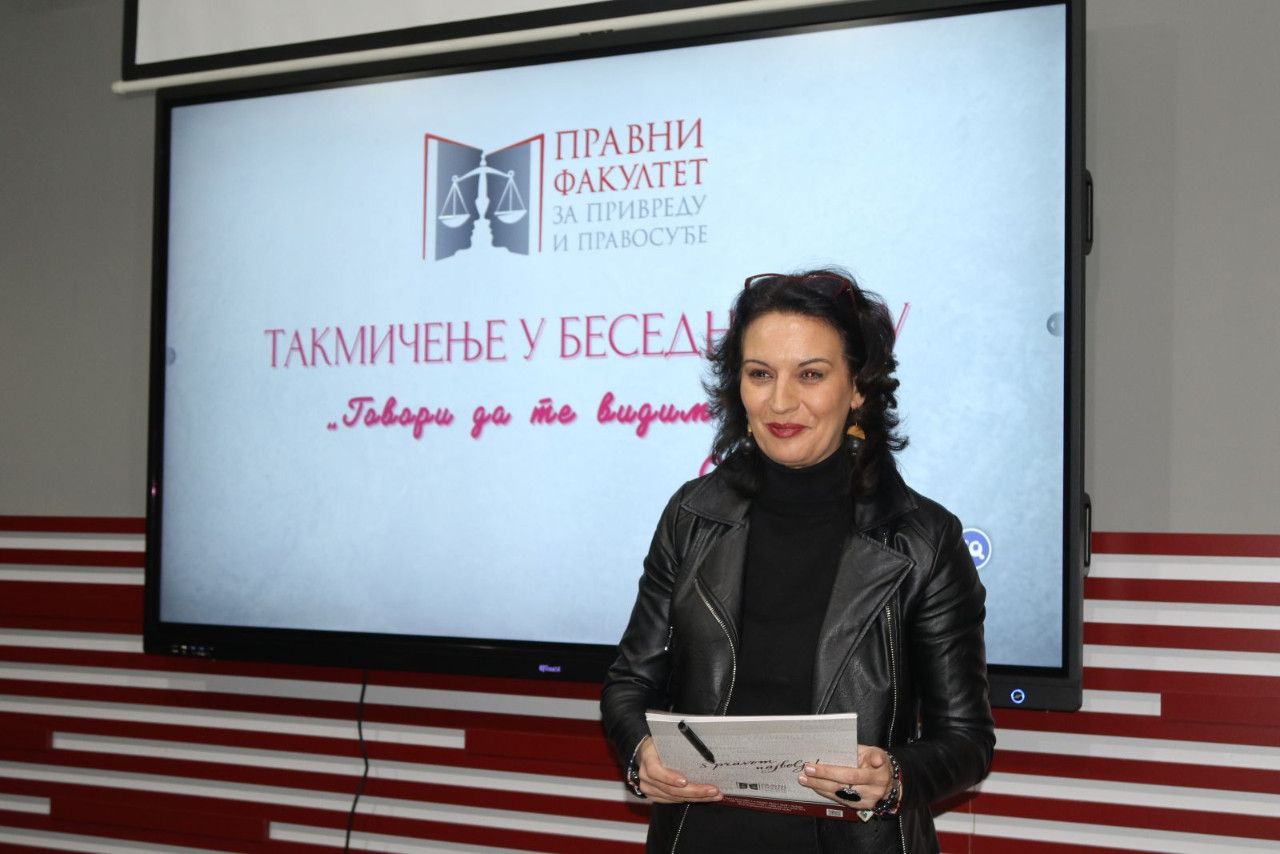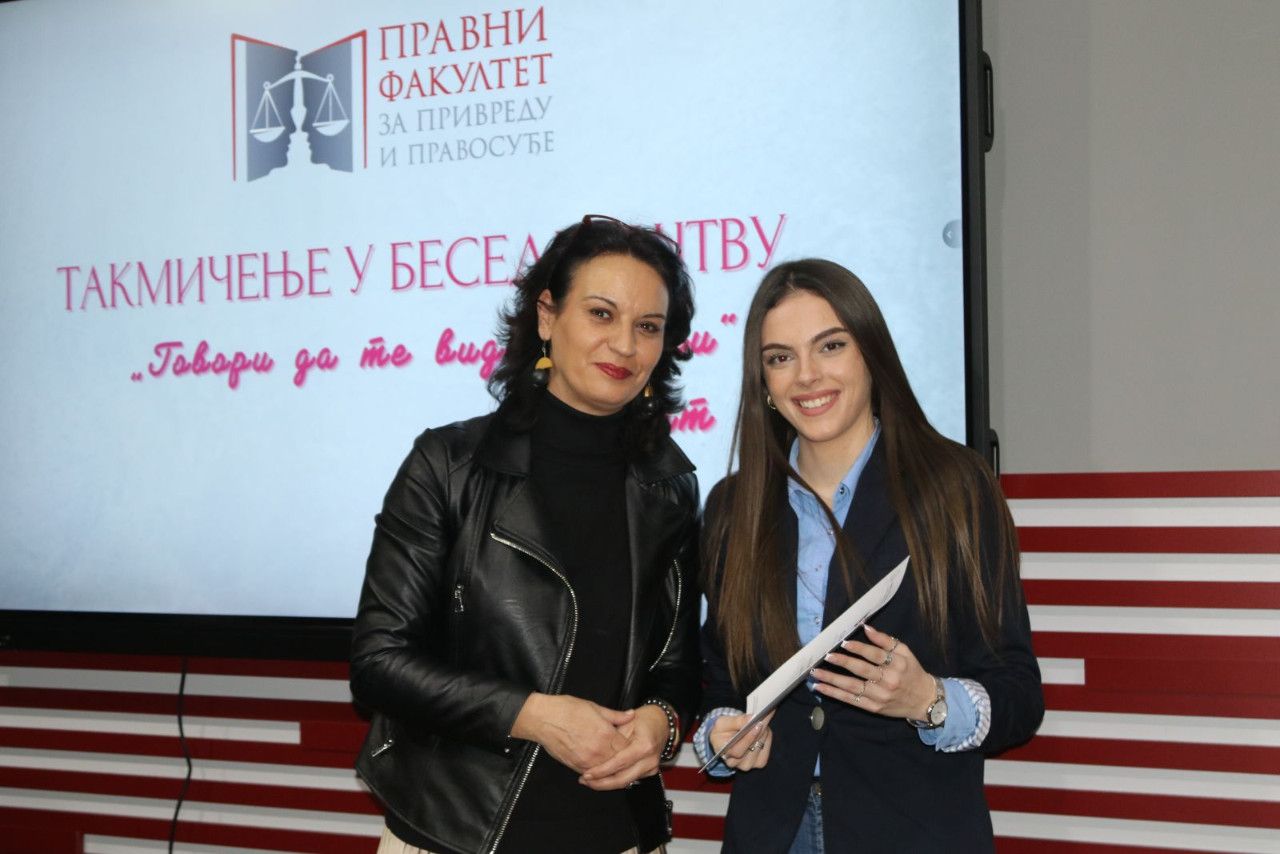 Prisutne je pozdravila i jedna od članica žirija sa izuzetno delikatnim zadatkom „odmeravanja“ i procenjivanja bezmalo jednako dobrih izlaganja bila je prof. dr Marijana Dukić Mijatović, državna sekretarka u Ministarstvu prosvete Vlade RS, koja je izrazila veliko zadovoljstvo mogućnošću da bude deo ovog uglednog takmičenja na jednoj visokoškolskoj ustanovi koja kao tradiciju ima takmičenje u besedništvu duže od jedne decenije. „Kao predstavnik Ministarstva prosvete mogu izuzetno afirmativno da se osvrnem na sam događaj i na učesnike, maturante i studente. I za jedne i za druge je od nemerljive važnosti negovanje oratorstva. Bez sistematizovanog znanja nema dobre besede, jer jedino tako možemo uveriti sagovornika u naše pravne, naučne, religijske i svake druge stavove. Zato besedništvo mora da se neguje, kao i tradicija, čitanje. Generacije novog milenijuma su vrlo vešte u digitalnoj tehnologiji koja nam je vrlo bitna i kojoj posvećujemo pažnju. Mnogo smo uložili i u digitalizaciju obrazovanje. Ali naš identitet, našu književnost, duh našeg naroda i besedništva treba negovati posebno kod mladih ljudi koji žele da se bave pravnom strukom, jer ovde se školuju buduće sudije, advokati, tužioci kojima je govor i reč alat u njihovom budućem zanimanju i primeni zakona“- izjavila je povodom ovog događaja državna sekretarka.