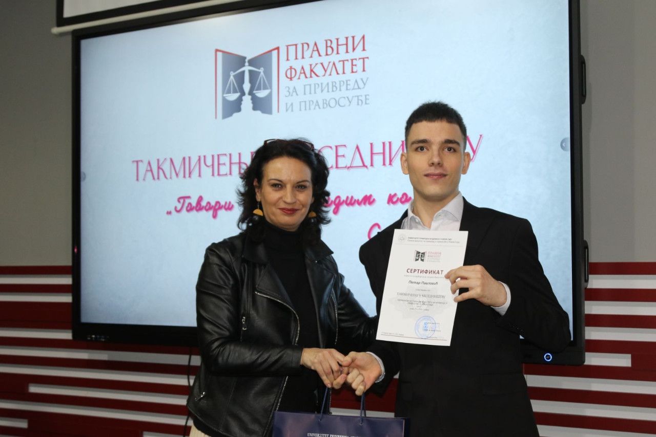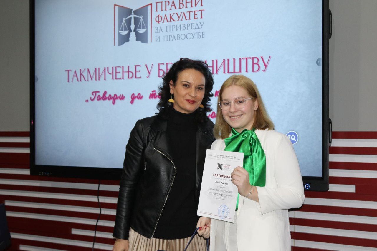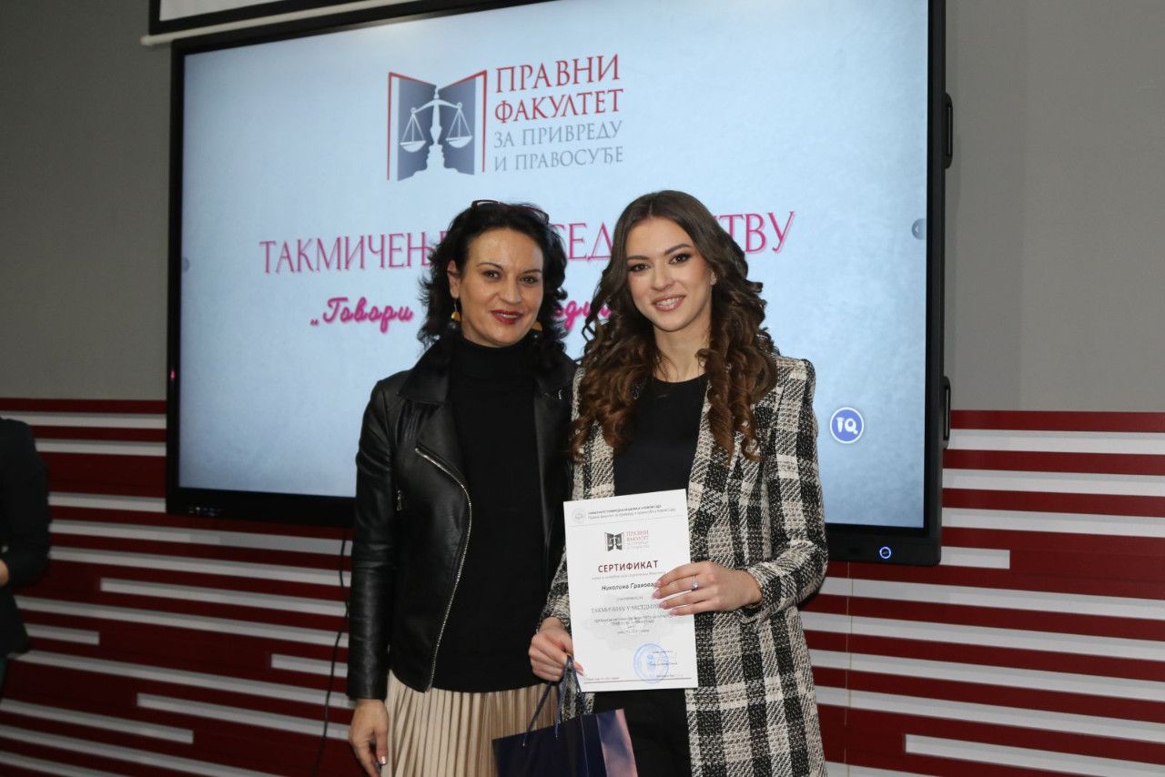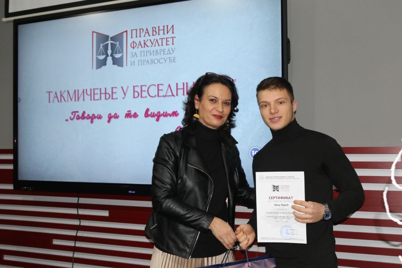 Prisutne je pozdravila i jedna od članica žirija sa izuzetno delikatnim zadatkom „odmeravanja“ i procenjivanja bezmalo jednako dobrih izlaganja bila je prof. dr Marijana Dukić Mijatović, državna sekretarka u Ministarstvu prosvete Vlade RS, koja je izrazila veliko zadovoljstvo mogućnošću da bude deo ovog uglednog takmičenja na jednoj visokoškolskoj ustanovi koja kao tradiciju ima takmičenje u besedništvu duže od jedne decenije. „Kao predstavnik Ministarstva prosvete mogu izuzetno afirmativno da se osvrnem na sam događaj i na učesnike, maturante i studente. I za jedne i za druge je od nemerljive važnosti negovanje oratorstva. Bez sistematizovanog znanja nema dobre besede, jer jedino tako možemo uveriti sagovornika u naše pravne, naučne, religijske i svake druge stavove. Zato besedništvo mora da se neguje, kao i tradicija, čitanje. Generacije novog milenijuma su vrlo vešte u digitalnoj tehnologiji koja nam je vrlo bitna i kojoj posvećujemo pažnju. Mnogo smo uložili i u digitalizaciju obrazovanje. Ali naš identitet, našu književnost, duh našeg naroda i besedništva treba negovati posebno kod mladih ljudi koji žele da se bave pravnom strukom, jer ovde se školuju buduće sudije, advokati, tužioci kojima je govor i reč alat u njihovom budućem zanimanju i primeni zakona“- izjavila je povodom ovog događaja državna sekretarka.
