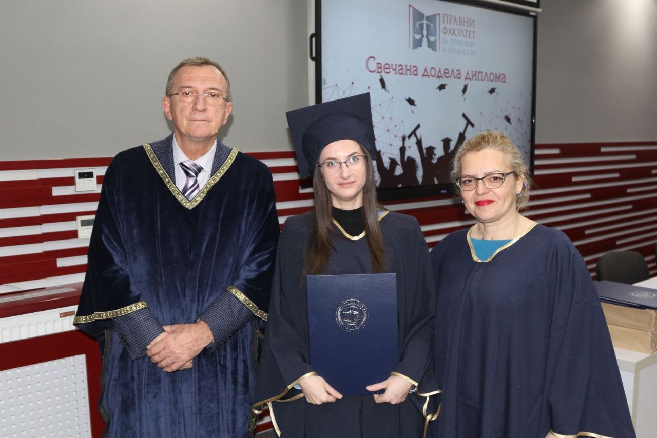 Nakon intoniranja univerzitetske himne „Gaudeamus Igitur“, diplomirane pravnike i njihove roditelje i prijatelje pozdravio je dekan fakulteta prof. dr Milan Počuča koji im je čestitao na uspešno završenim osnovnim akademskim studijama. Naglasio je da je iza njih dug i nimalo lak put koji su oni uspešno prešli, kao i da njihovi roditelji treba da budu ponosni.
