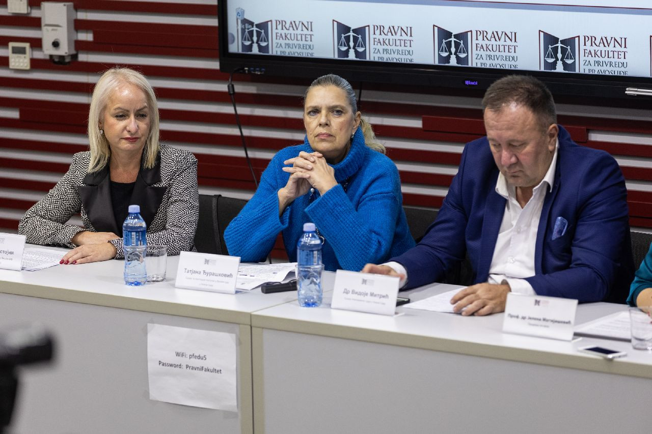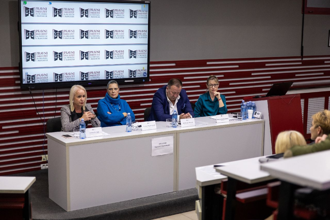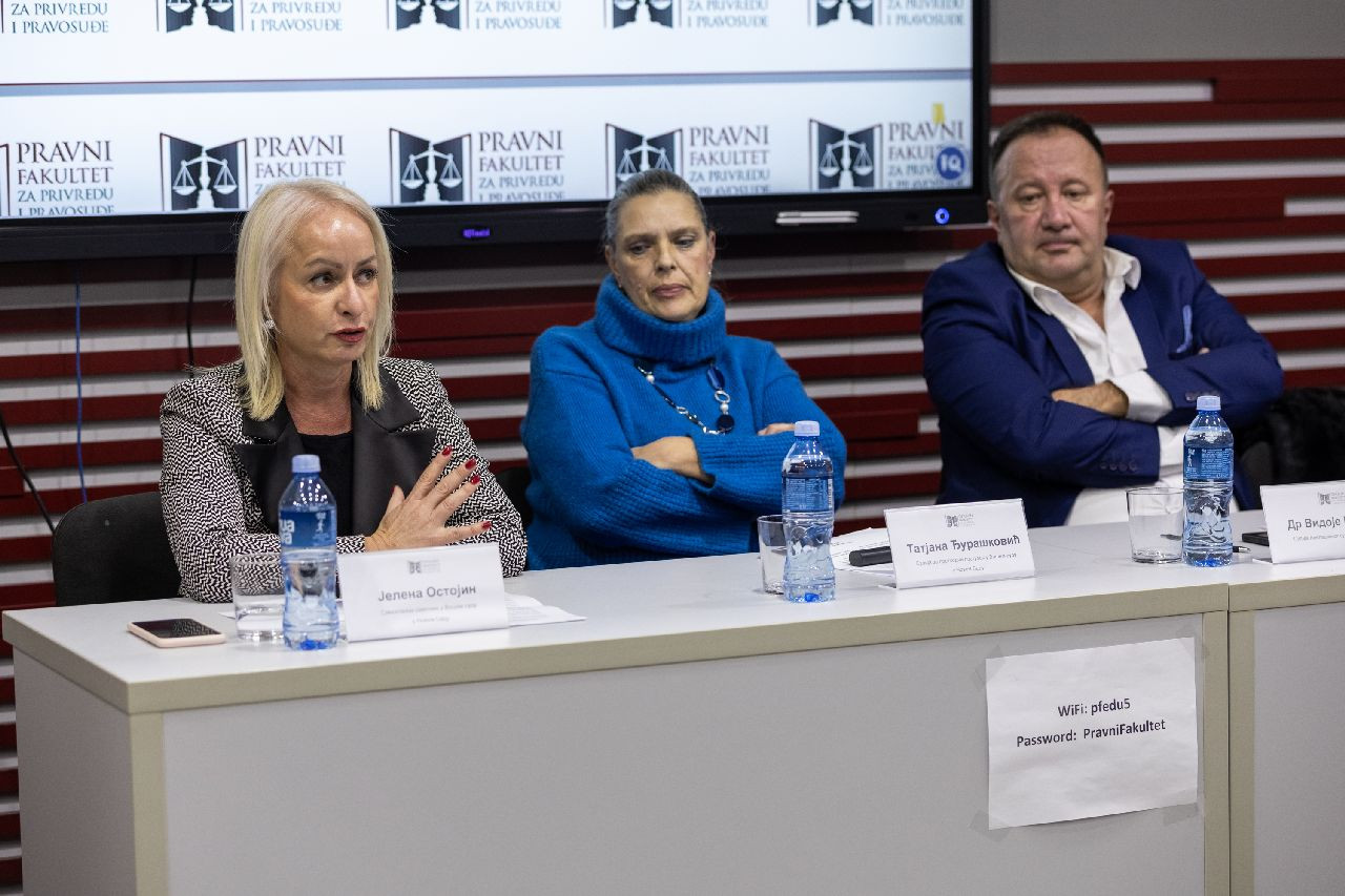 Učesnici tribine bili su: prof. dr Jelena Matijašević, prodekanka za nauku i glavna urednica naučnog časopisa „Pravo – teorija i praksa“, dr Vidoje Mitrić, sudija Apelacionog suda u Novom Sadu, Tatjana Đurašković, sudija za prethodni postupak u Višem sudu u Novom Sadu i Jelena Ostojin, samostalni savetnik u Višem sudu u Novom Sadu.