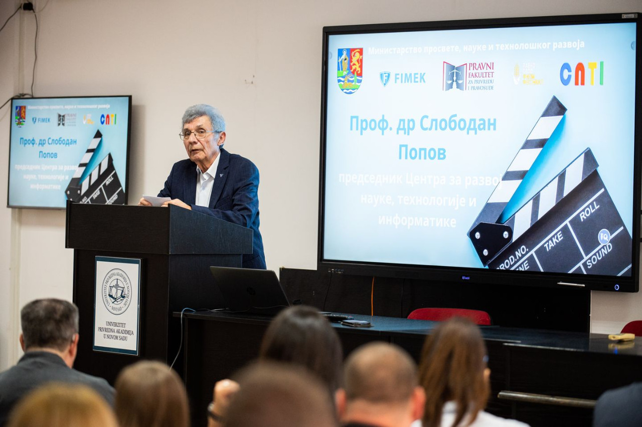 Prof. dr Slobodan Popov, ispred Centra za razvoj i primenu nauke, tehnologije i informatike, koji je ujedno i realizator ovog takmičenja, posebno je istakao poruke koje šalјu nagrađeni filmići kao odgovor na ponuđene teme viđeno očima učenika.
