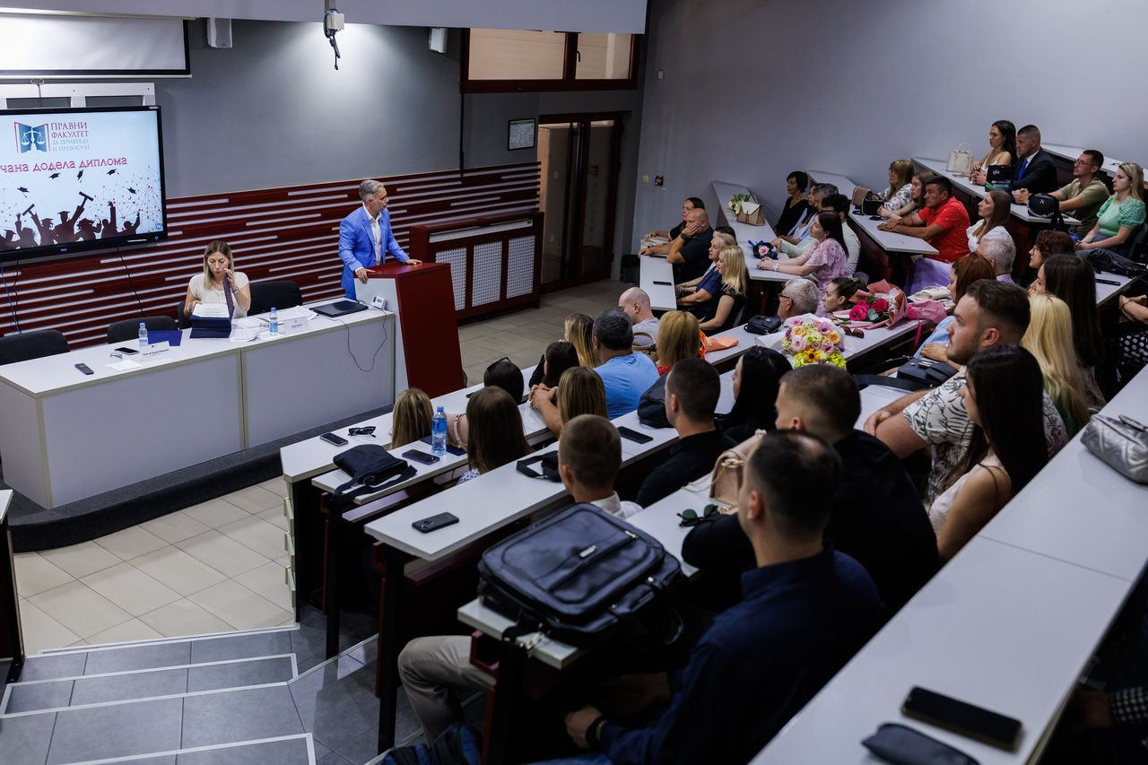 Svečana dodela diploma održana je u petak, 28. juna 2024. godine u amfiteatru Pravnog fakulteta za privredu i pravosuđe u Novom Sadu.