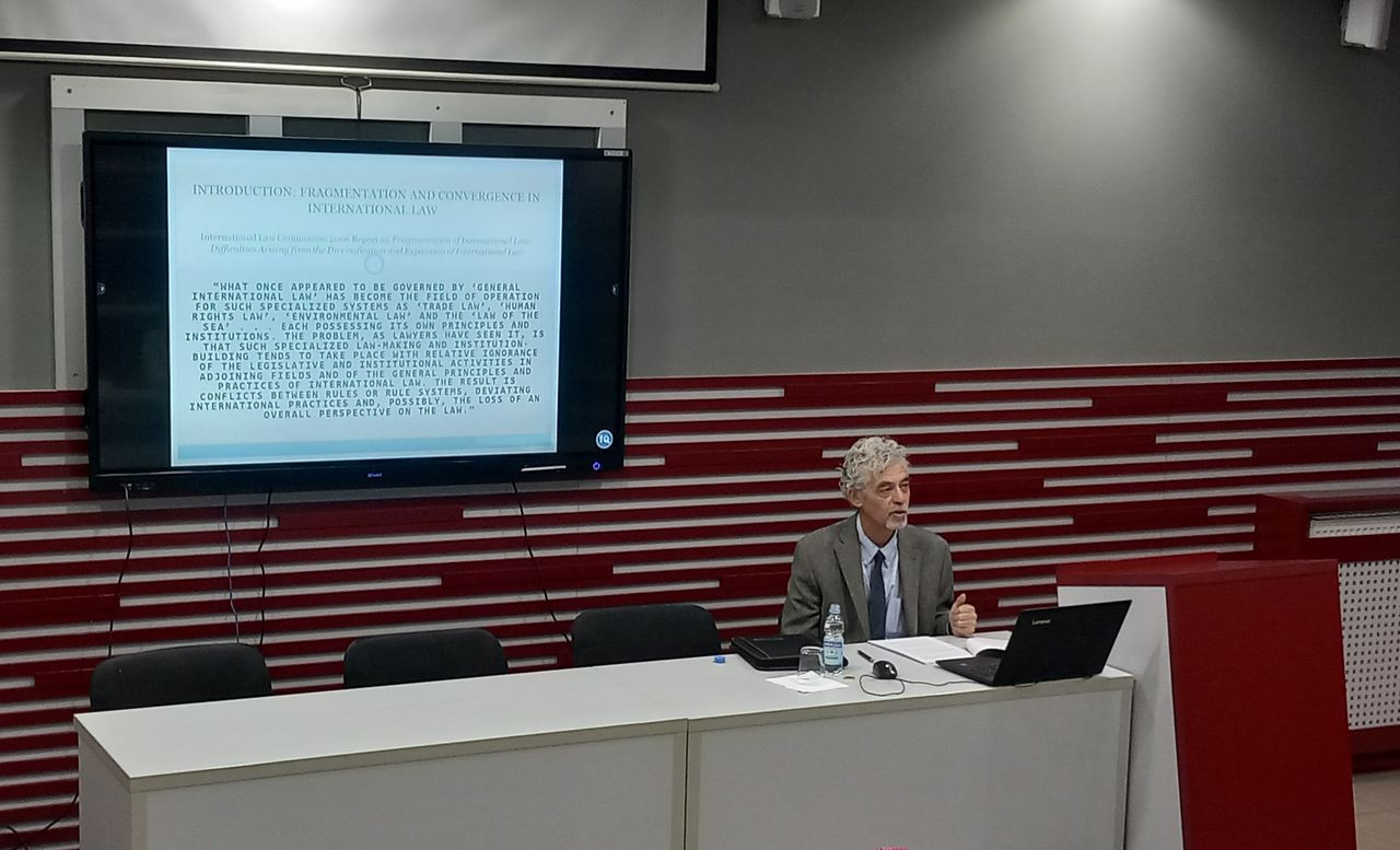 Tokom predavanja profesor Kibel je ukazao na fragmentaciju međunarodnog javnog prava, naročito u domenu međunarodne zaštite životne sredine. Posebna pažnja posvećena je implementaciji Konvencije o proceni uticaja na životnu sredinu u prekograničnom kontekstu. Profesora Kibela su pre predavanja u ime Pravnog fakulteta za privredu i pravosuđe u Novom Sadu primili dekan, prof. dr Milan Počuča i prodekanka za međunarodnu saradnju, prof. dr Marijana Mladenov.