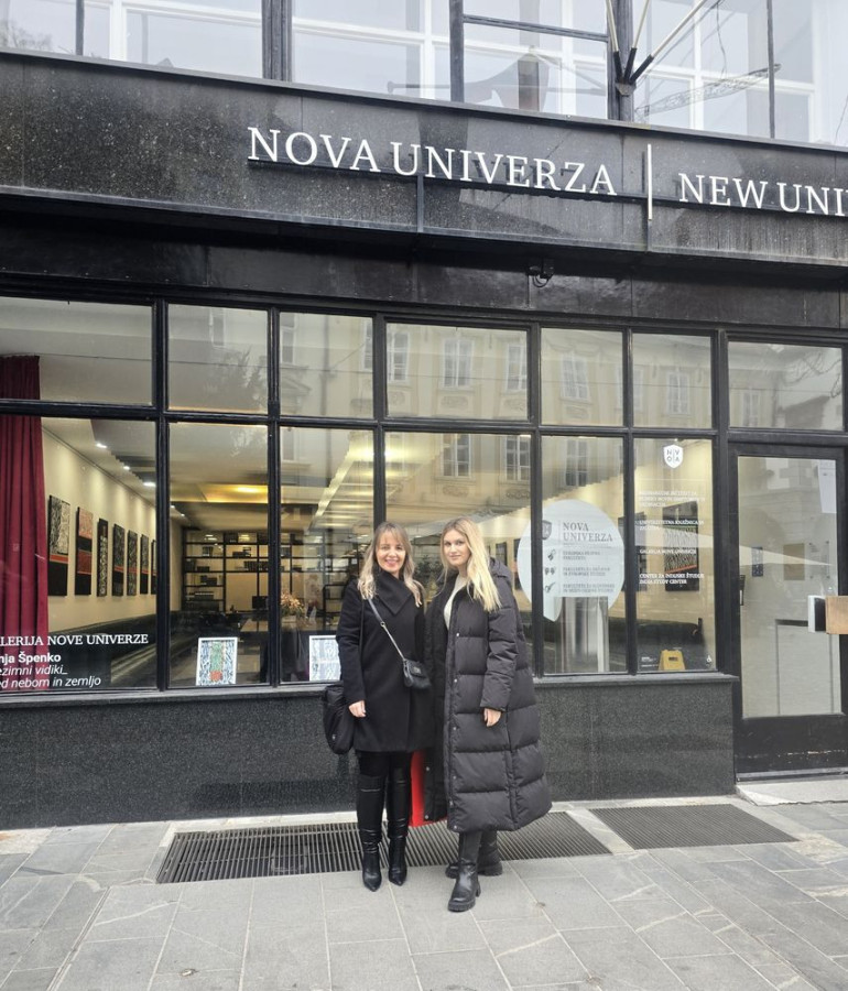 Prodekanka za međunarodnu saradnju na Pravnom fakultetu za privredu i pravosuđe u Novom Sadu, prof. dr Marijana Mladenov i saradnica u nastavi i član Kancelarije za međunarodnu saradnju i projekte, mast. prav. Tamara Crevar, su 13. decembra 2024. godine posetile Univerzitet „Nova Univerza“ u Ljubljani.