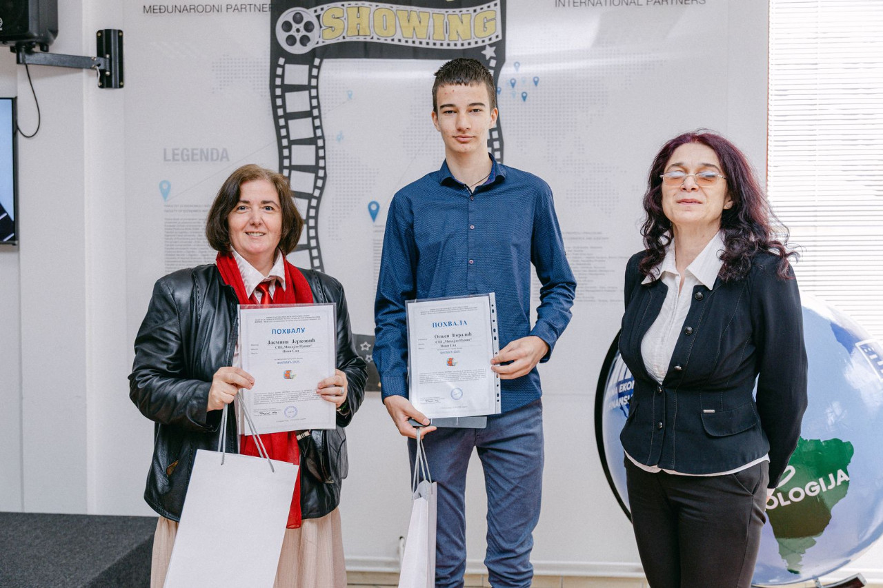 Prof. dr Slobodan Popov, ispred Centra za razvoj i primenu nauke, tehnologije i informatike, koji je ujedno i realizator ovog takmičenja, posebno je istakao poruke koje šalјu nagrađeni filmići kao odgovor na ponuđene teme viđeno očima učenika.